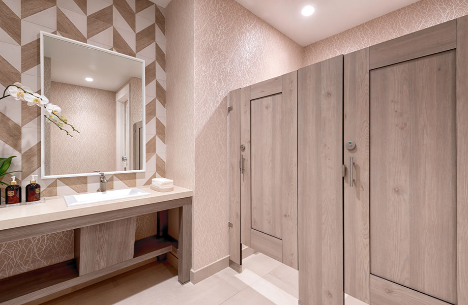 Más allá del rendimiento, Ironwood es conocido por su personalización audaz. Su oferta abarca estilos de puertas desde rejillas y paneles capturados hasta incrustaciones intrincadas, grabados y formas únicas. Al combinar esta flexibilidad de diseño con las amplias posibilidades de los productos de la marca Formica®, Ironwood demuestra cómo las particiones de baño pueden reflejar tanto individualidad como sofisticación.